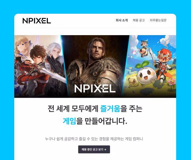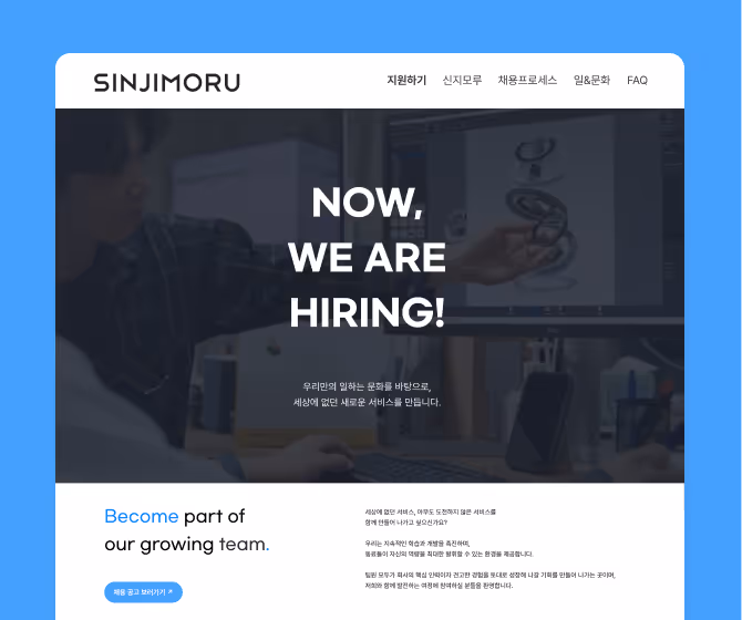 나인하이어로 손쉽게 구축한 채용 홈페이지로